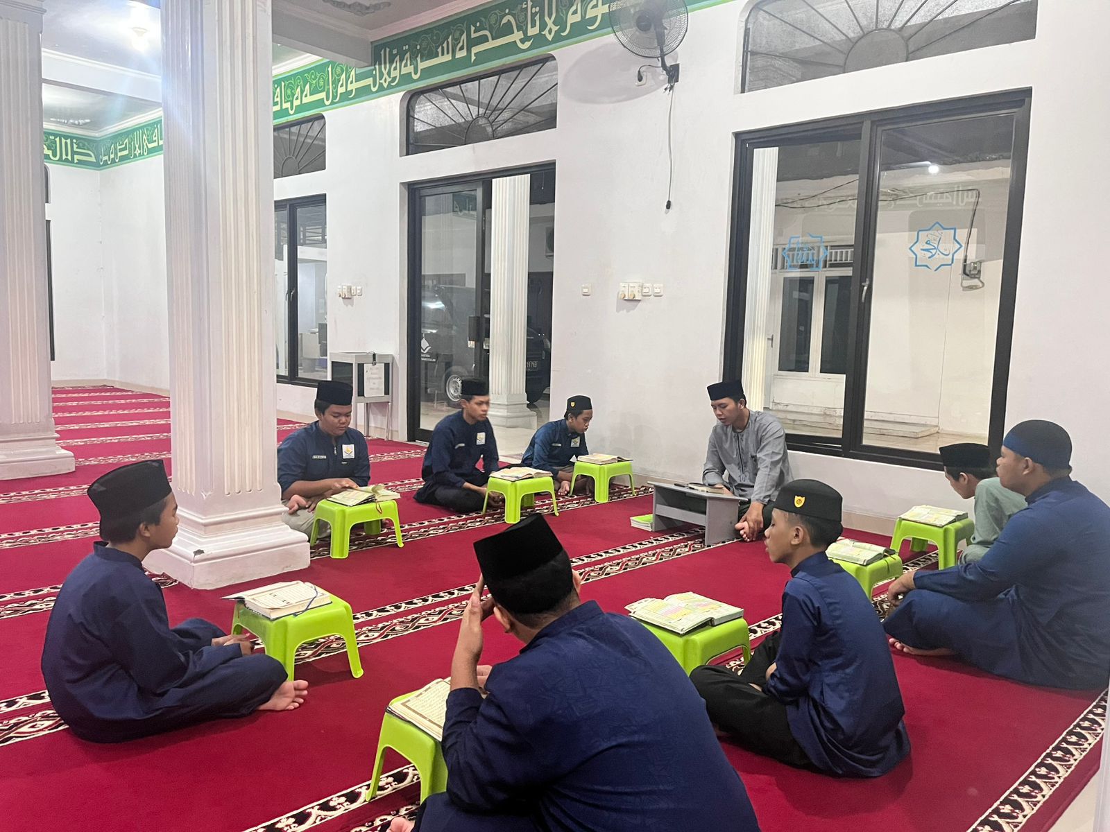 Bekasi — Suasana tenang dan penuh kekhusyukan terasa di dalam ruang halaqoh Al-Qur’an Pesantren Tahfidz Daarussalaam. Para santri duduk melingkar rapi di atas karpet merah, masing-masing memegang mushaf, melantunkan ayat-ayat suci dengan penuh penghayatan di bawah bimbingan seorang ustadz.